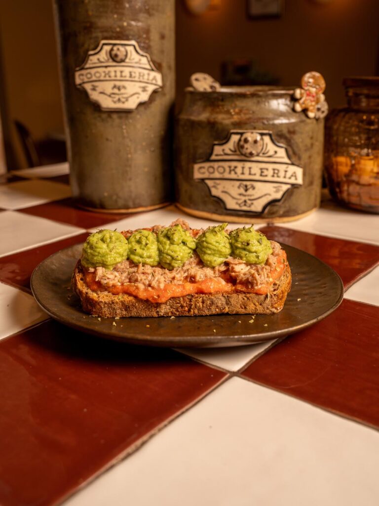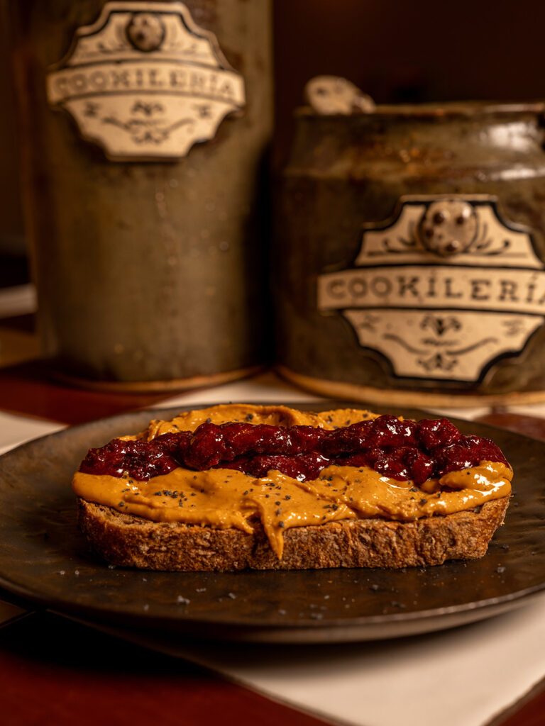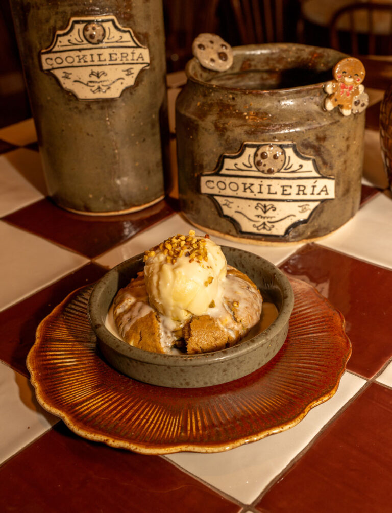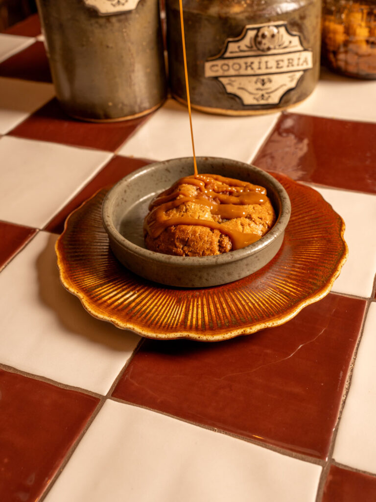 Cookie made with lemon leaf butter and a crispy cinnamon exterior, topped with dulce de leche and cinnamon.