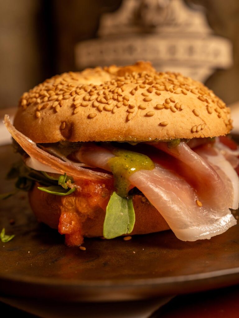 Pistachio cookie with white chocolate and Orange blossom essence, filled with homemade pistachio cream.