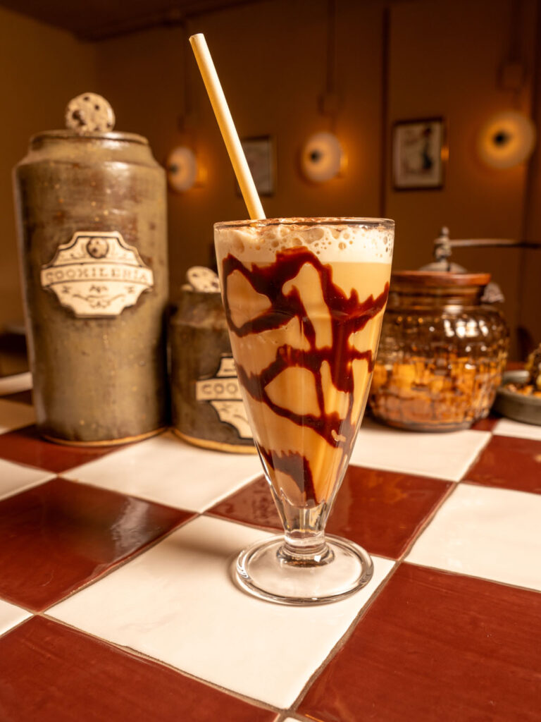 Coffee frappe, tiramisú-flavored syrup, ice, milk and cocoa.